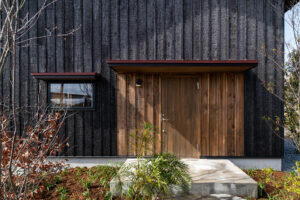 焼杉の外観は、街の中でも凛と静かで